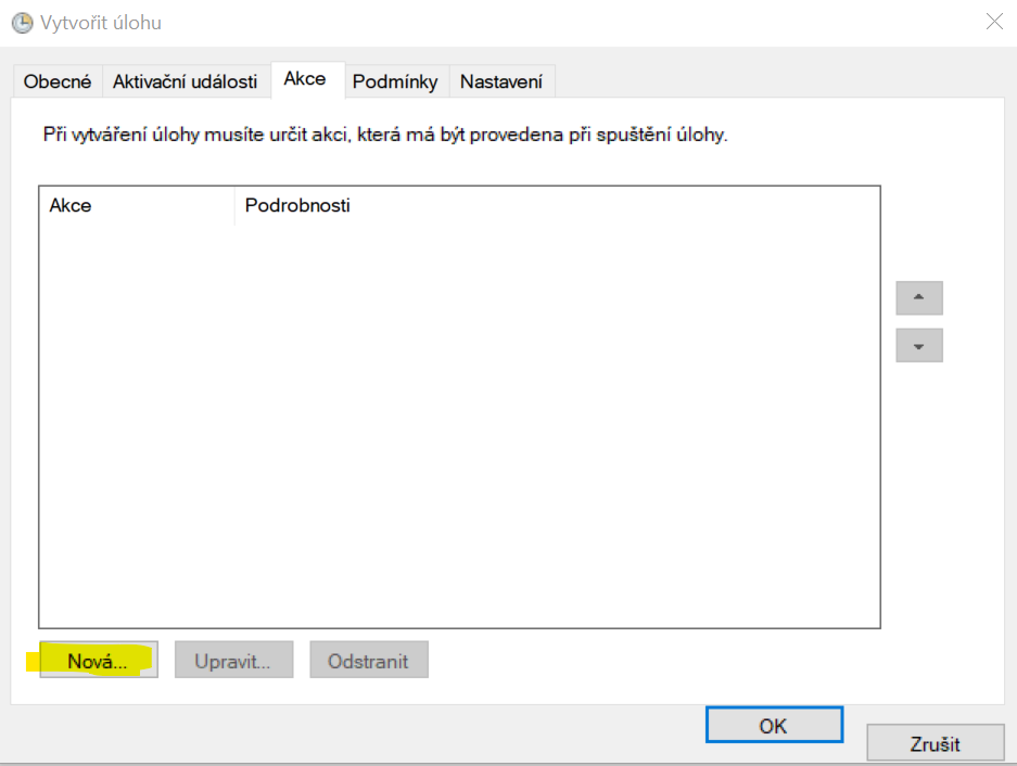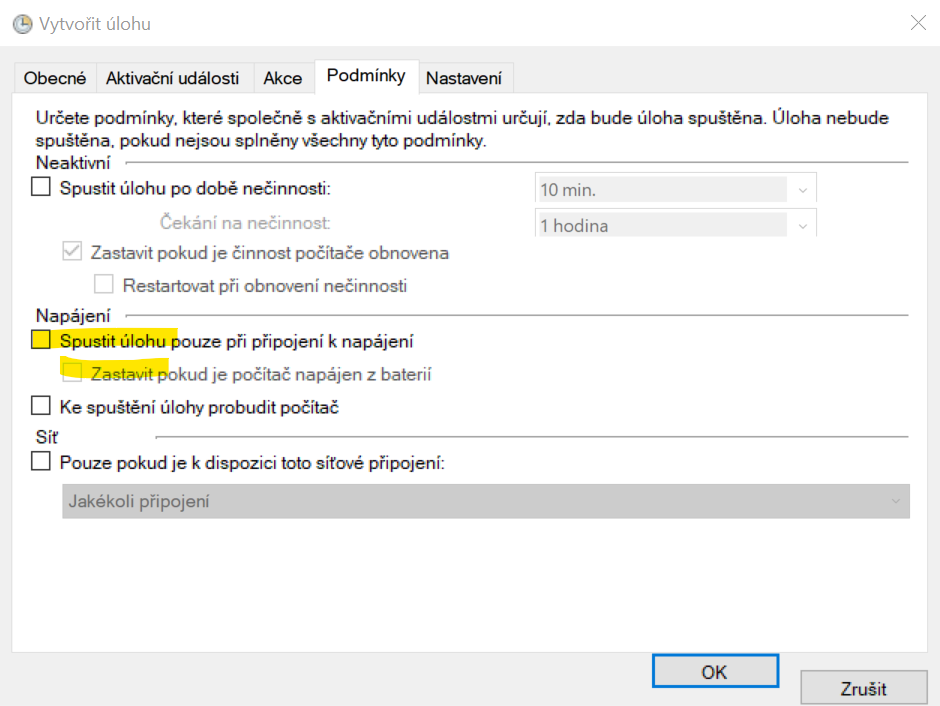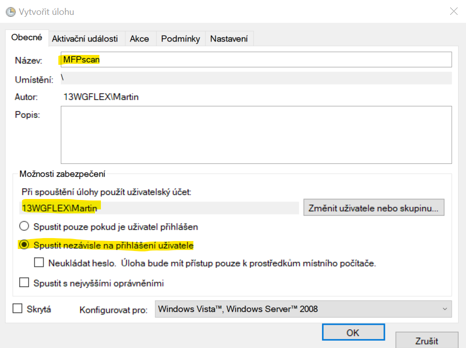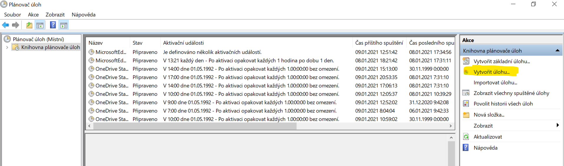 Teď to zkouším přes plánovač úloh, ale nedaří se mi vytvořit funkční úlohu: