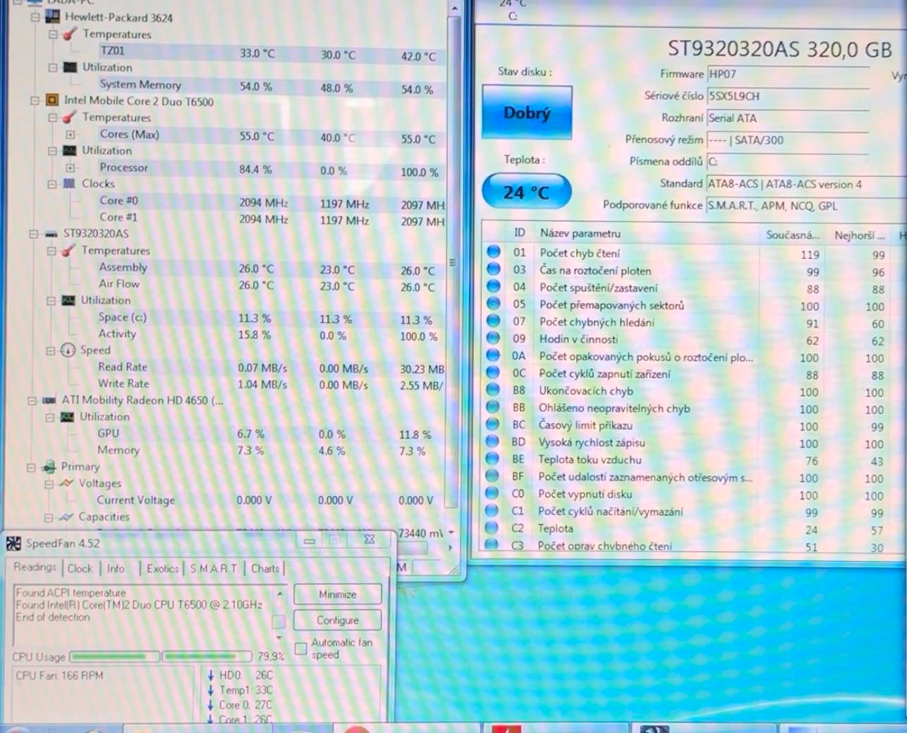 HwMonitor, SpeedFan, CrystalDiskInfo (teplota disku).