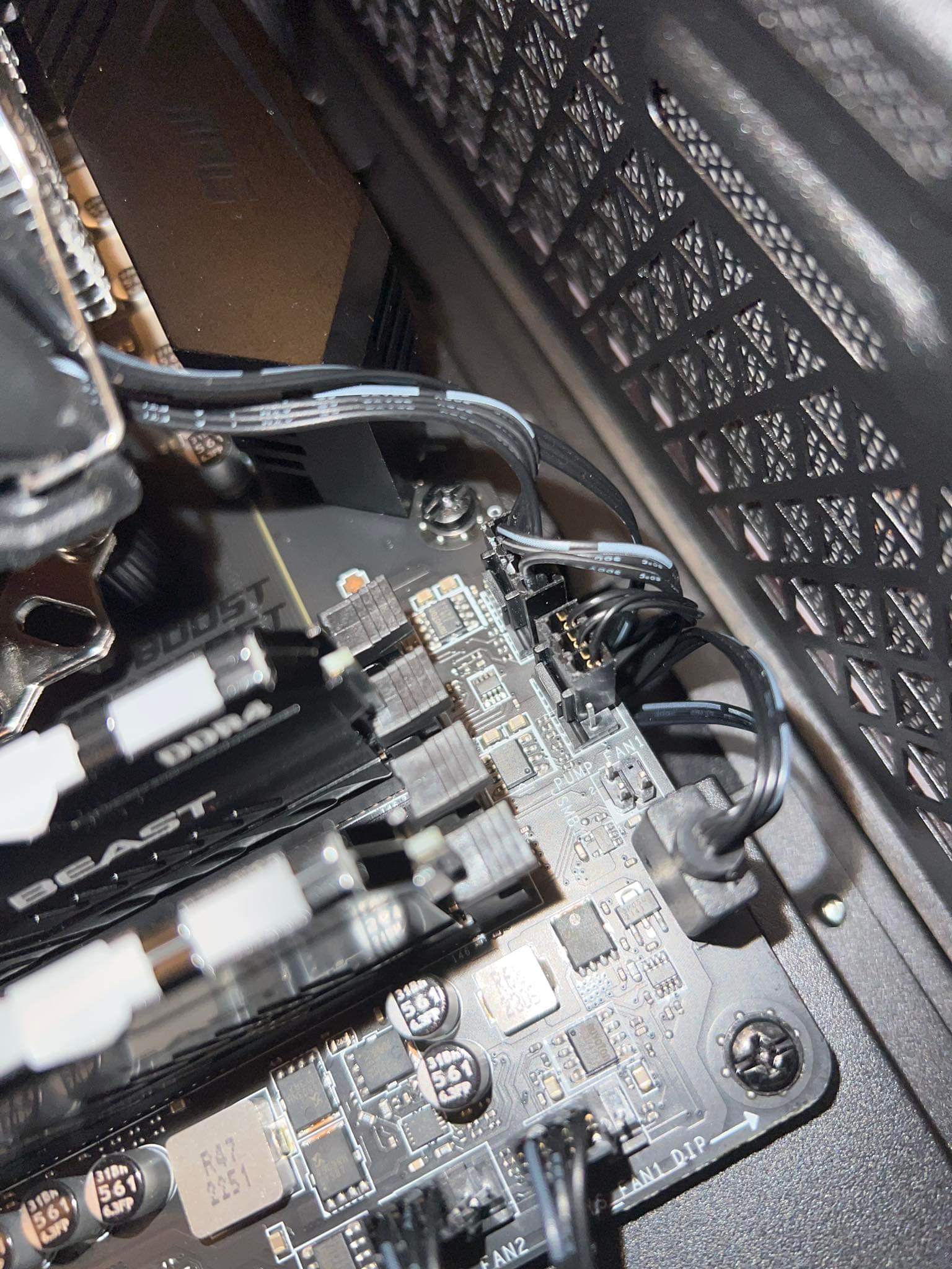 Troufnu si říct, že je pc správně zapojené - vše dle manuálu. Nic nepřebývá a to co má být zapojené, tam je. 24 pin MB, 8 CPU, a PCI 6 na mou XFX RX 560 ze svého starého pc. První věc, která mě napadla je flashnout bios.