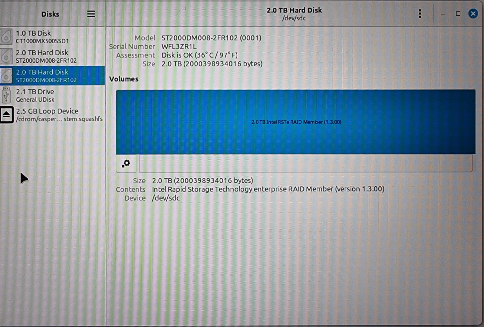 Pokud je RAID sestaveny v BIOSu, tak v systemu vidis 1 disk, to je spravne.
