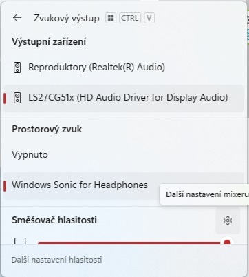 Když se v System Tray přepnu na zvuk monitoru, monitor nehraje. Přímo v nastavení monitoru je volume cca 85. V nastavení zvuku ve Windows vypadá vše také v pořádku. Přidávám screenshoty.