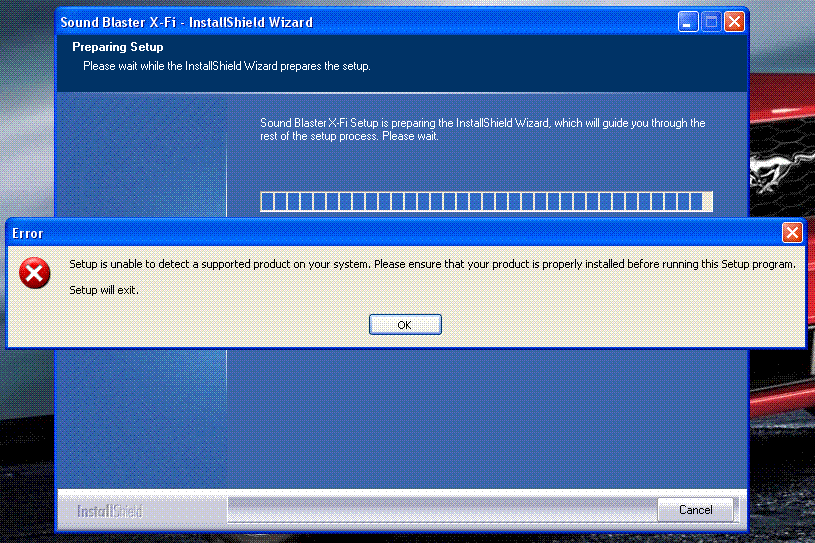 Zdravím, mám zvukovou kartu Creative Xtreme Fidelity, ale dneska mi z ničeho nic přestal fungovat zvuk. Tak jsem zkoušel najet do panelu creative, ale psalo mi to, že nemůže najít hw. Ve správci zařízení mám multimediální zvukový adaptér se žlutým otazníkem, když ho odeberu a restartnu PC, tak mi to znovu zahlásí, že byl nalezen nový hw (multimediální zvukový adaptér). Když chci nainstalovat ovladače, které jsem ke kartě dostal, oznámí to při instalaci chybu viz. screen. Už opravdu nevím, co mám dělat. Díky za případnou pomoc.