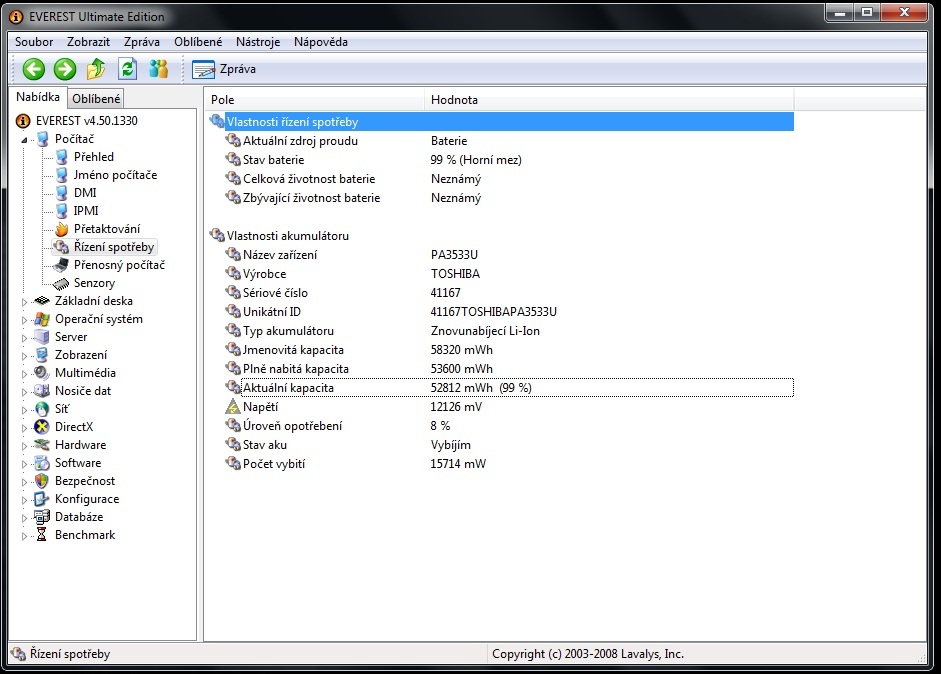 Ahoj, potřebuji pomoct. Už asi týden mi můj NTB dělá to, že se sám od sebe vypne. Dělá to vždy když ho odpojím ze sítě, poté nejde zapnout dokud ho zase nepřipojím. Everest mi ukazuje úroveň opotřebení 9% . Stav baterie 100% (horní mez). Chyba v baterii by tedy být neměla. Napadly mě nějaké ovladače k baterce, či něco podobného, ovšem ve správci zařízení jsem nic nenašel o špatných, či starých ovladačích.