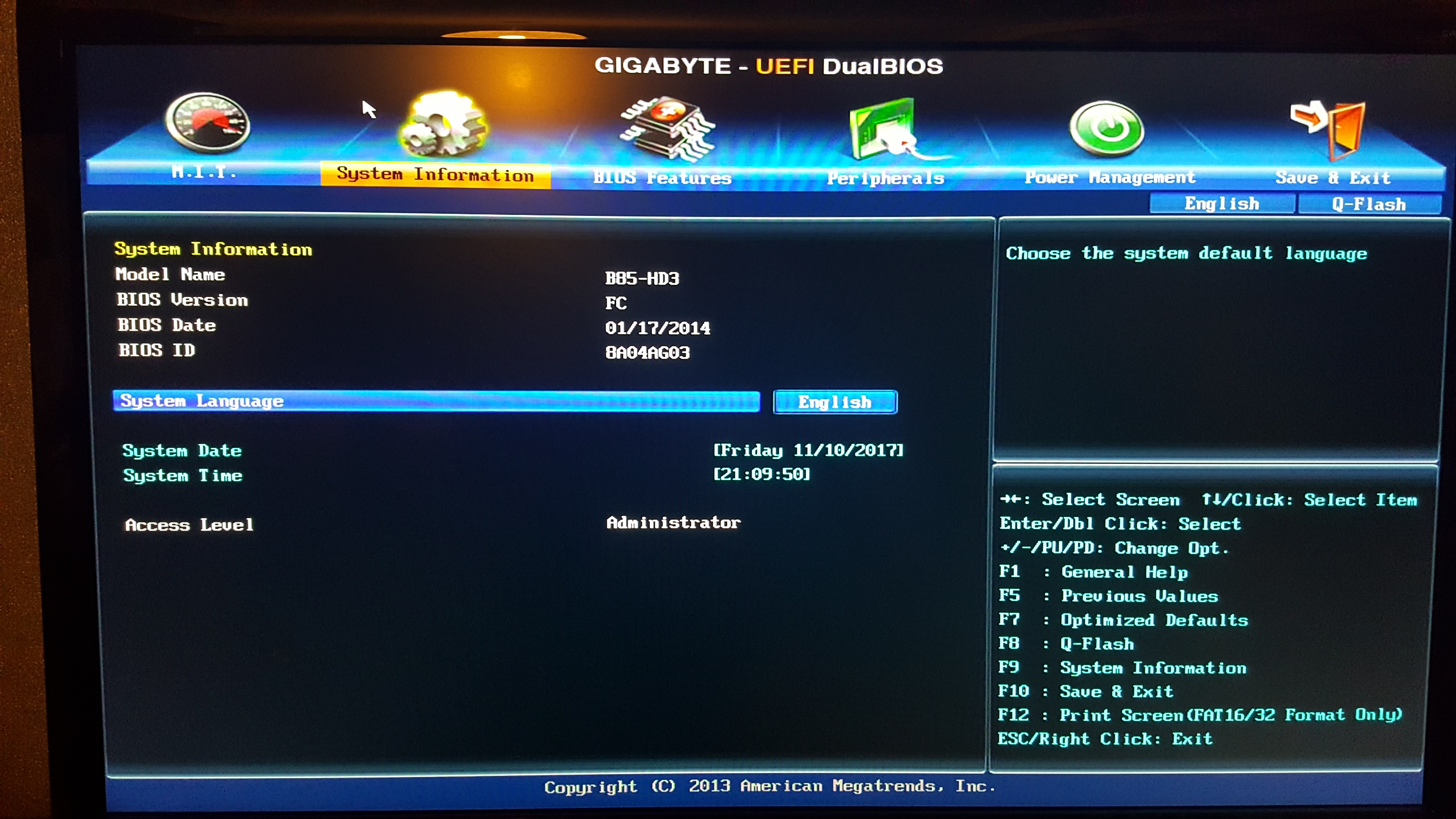 Nejnovejsi bios je verze FH, dej si ji tam. Novy system na starsi desce nemusi vzdy chodit ok, proto se vydajaji opravy.