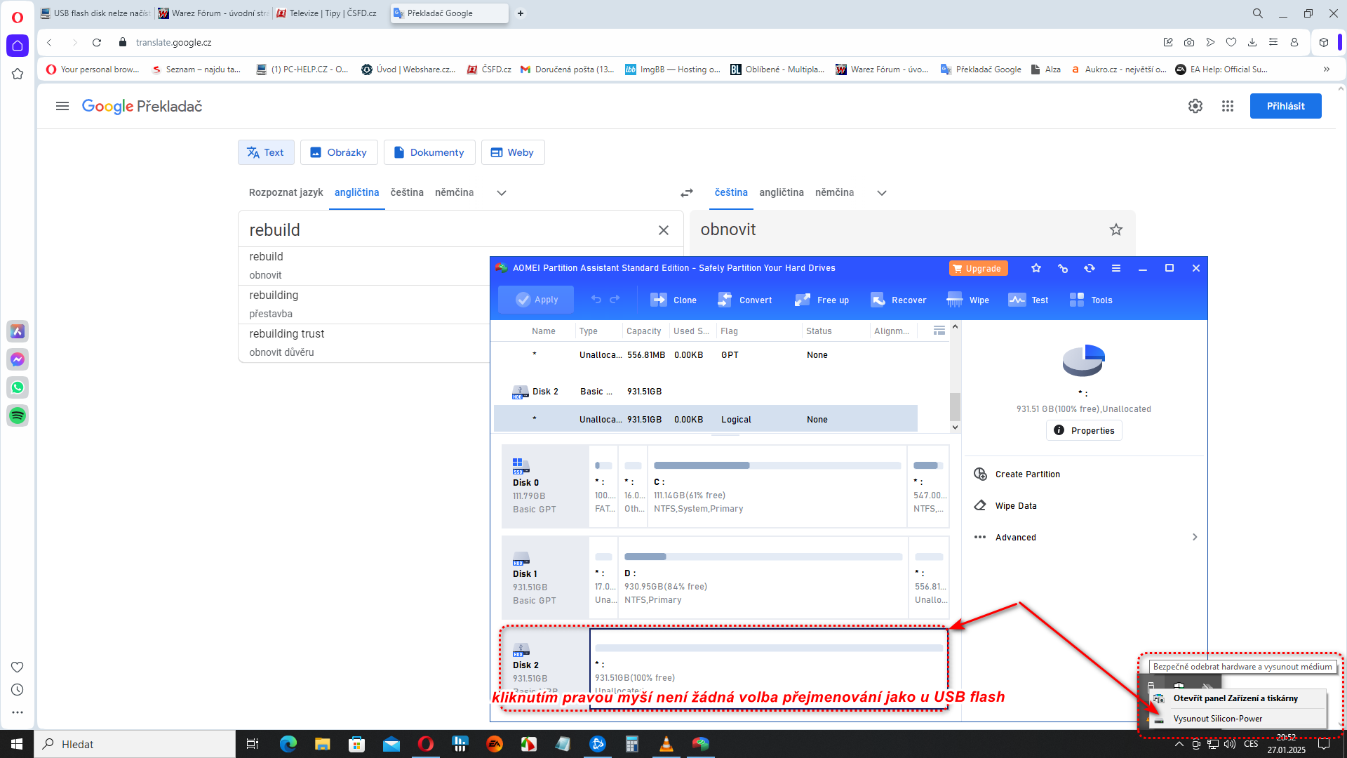 Dá se nějak odebrat v tom programu ten disk ? USB šlo i přejmenovat ale externí disk na na oddílu 3 nejde s tím nic dělat :((