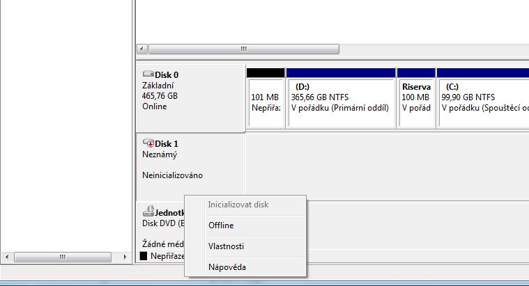 Při zapojení to dá ton připojení, disk se točí, ve správci disků je vidět... ale není... -> viz. příloha obrázku. CHtěla jsem to vytáhnout přes Wizzard Recovery System, ale těžko něco vytáhnu, když jej PC nerozezná. Zkoušela jsem přiřadit i jednotku, ale není mi to dovoleno.