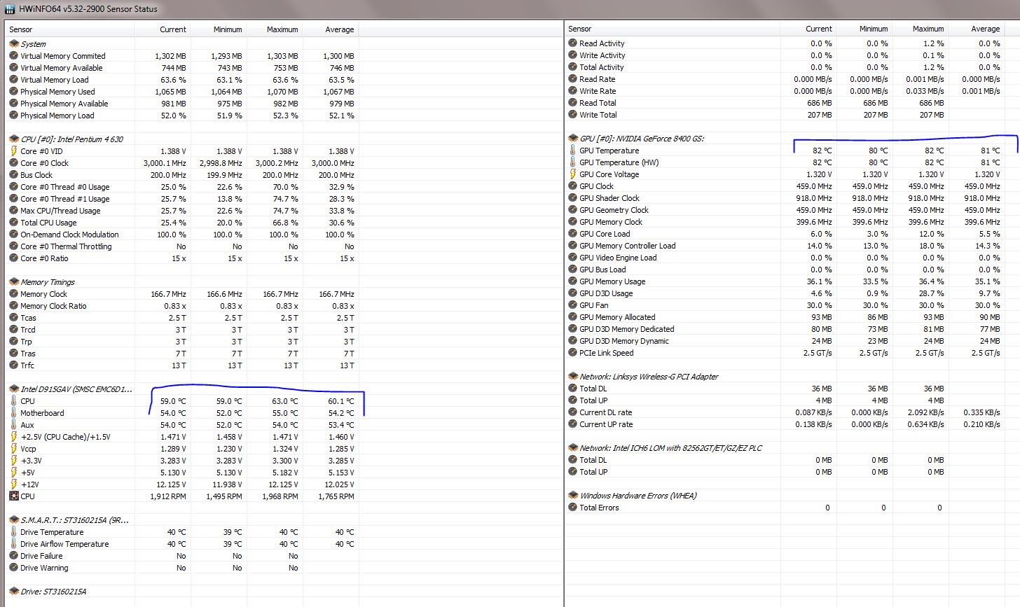 vypadá to na celkem starý pc, ale zachráníme ho. Vidim to na přepastování cpu i gpu... pokud si to nikdy nedělal, tak bude původní pasta dost neúčinná. Na netu najdeš dost návodů ohledně přepastování