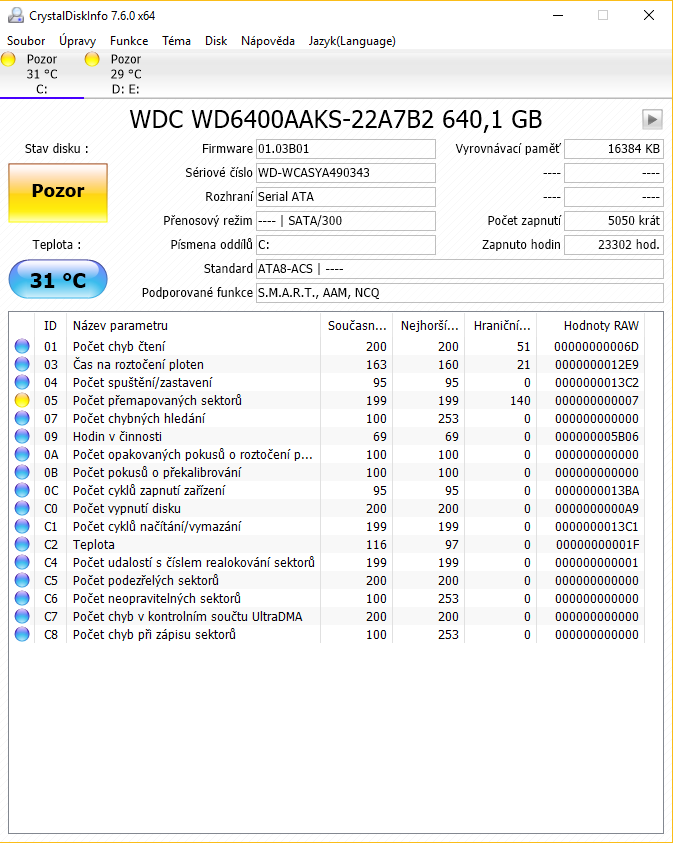 pro jistotu sem hoď screen z CrystalDiskInfo ohledně stavu hadru...
