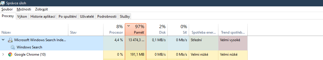 Dobrý den,dneska jsem si všiml ve správci úloh, že mi Microsoft widnows search indexer zabírá celou pamět.