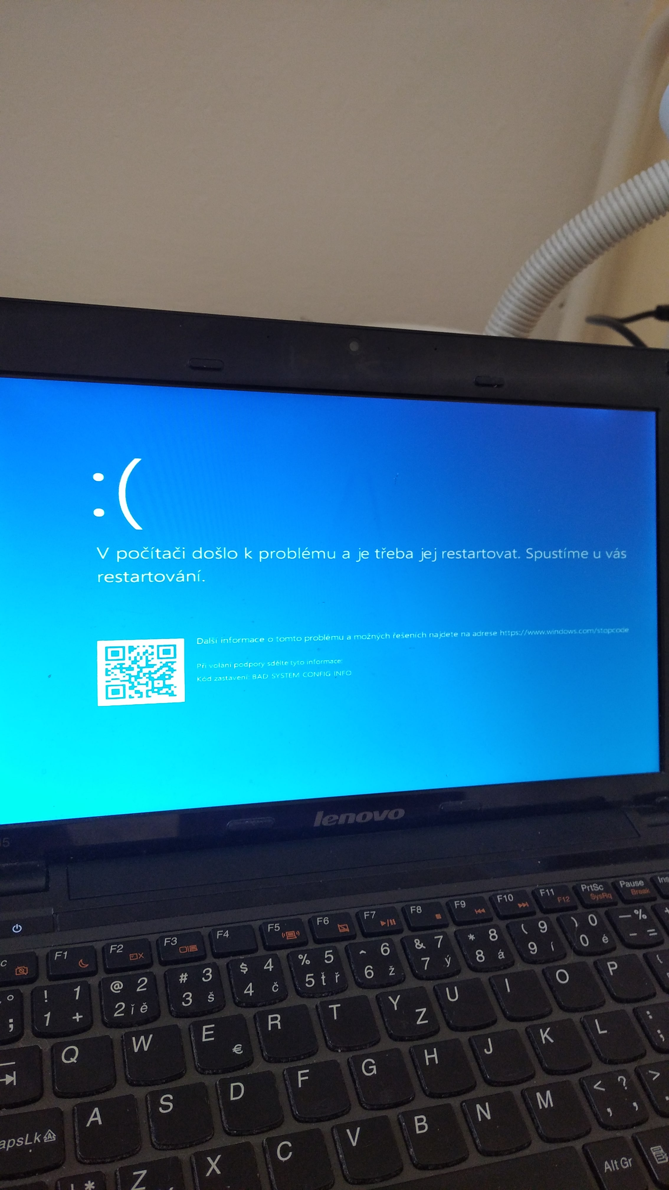 Zdravím, dostal jsem do ruky jeden starší notebook Lenovo Ideapad s205 a byl jsem požádán, abych tam přeinstaloval systém. Prvně jsem naformátoval disk v instalačním rozhraní windows 10. Nicméně během instalace se něco podělalo (neukázalo mi to, co) a nyní se děje to, že načte loadovací obrazovka windows a následně nic neříkající chybová hláška (fotky v příloze). Ten největší problém je, že najednou se nemůžu při startu dostat jak do biosu či do bootovacího menu, na klávesy to vůbec (najednou) nereaguje.