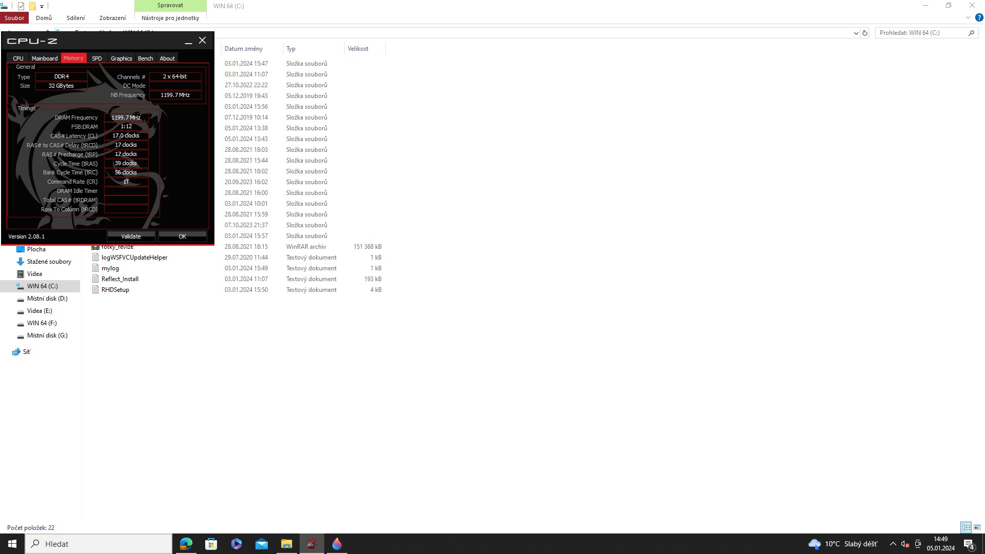 Udelej screen z CPU-Z z karty memory, at vidime jestli pameti skutecne bezi na 3200 MHz a ne jen na 2400 MHz.