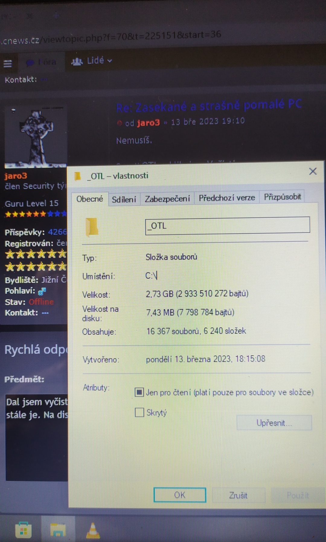 Dal jsem vyčistit, běželo to snad přes dvě hodiny, pak mi to restartovalo počítač a ta složka _OTL s tou přesunutou zálohou tam stále je. Na disku mám volných přes 80 GB.