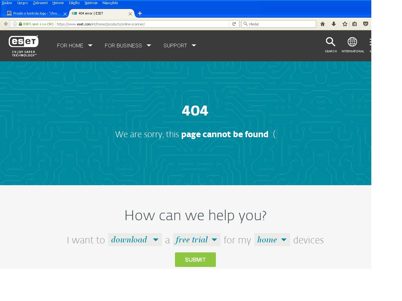 Odkaz na ESET Online Scanner háže nějakou chybu. Co s tím?
