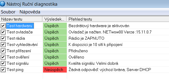 Když spustím diagnostiku, tak bude chyba někde v DHCP, výchozí brána.