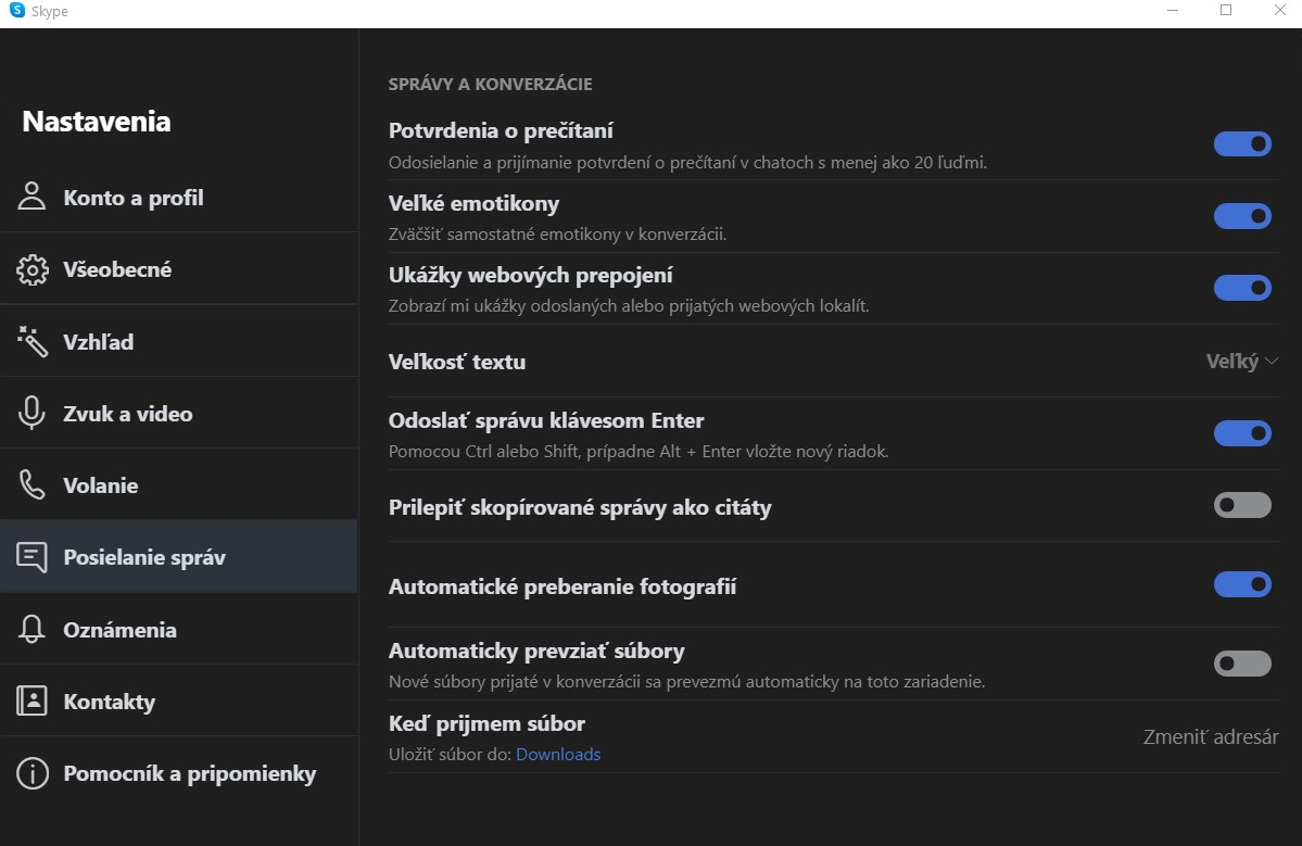 Nastavenia - Posielanie správ - Veľkosť textu - je tam 5 možností