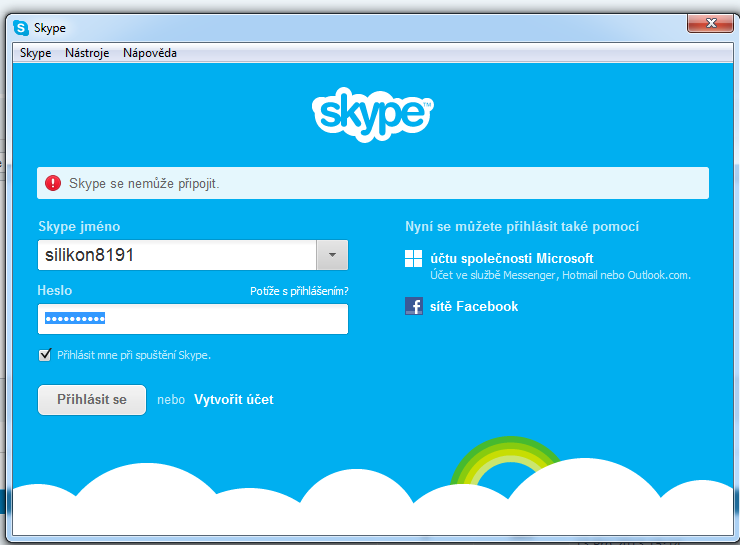 nelze se prihlasit na Skype