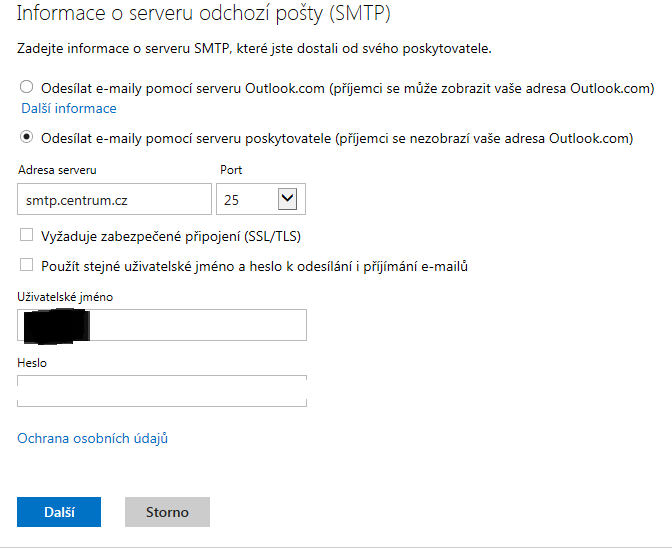Re: Outlook má problém s připojením k pšt.serveru smtp
