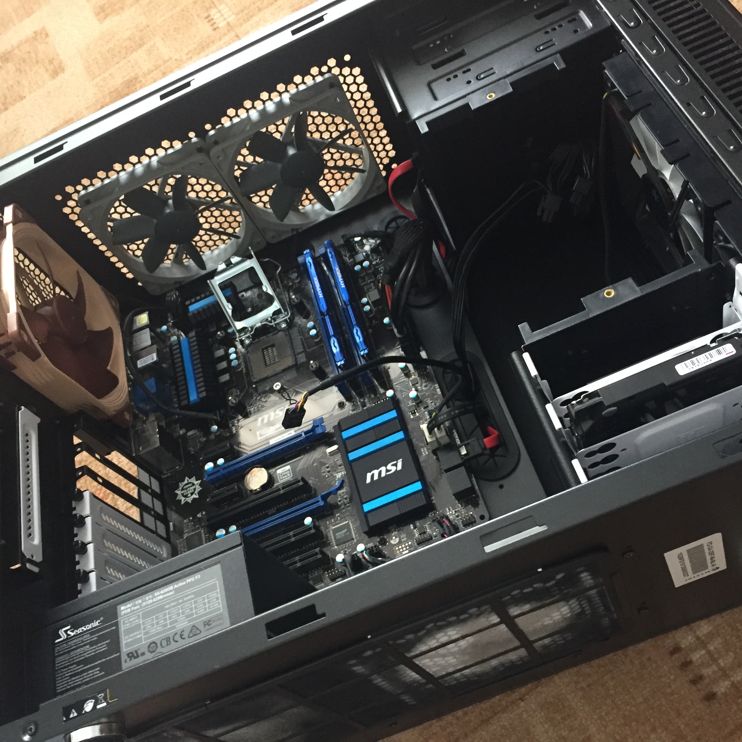 Ventilátory: 3x Noctua NF-S12B redux + 1x Noctua NF-A14 PWM + 2x Fractal 140 základ z case