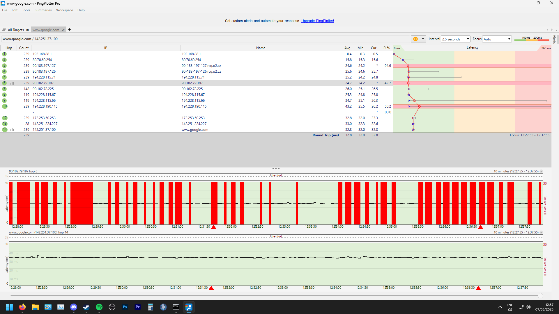 Problém tedy asi bude v nastavení mikrotiku protože jsem to nastavoval já sám přes "quickset". Kdyžtak posílám obrázky z pingplotteru před výpadkem a při výpadku