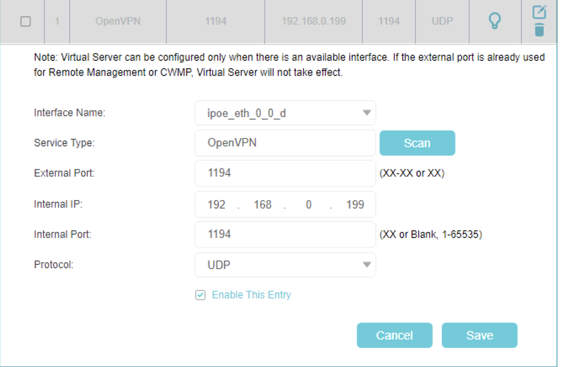 1. Máte na mysli otvorený port 1194 alebo faktické VPN nastavenie?