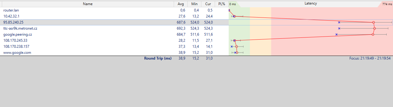 Momentálně mam internet od wifi poskytovatele tady na vesnici, je to 50/50, což je dostačující, ale problém tady je, že jsem kompetitivní hráč, a u tohoto internetu je hrozně nestabilní ping. Packet loss si skáče jak chce, a je to naprosto nehratelné.