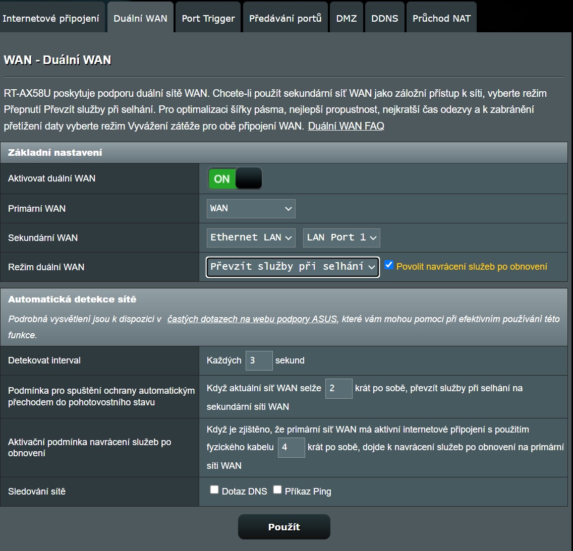 tak stejně jsem i přidal Dual WAN jak je psáno nahoře ale taky nepomohlo