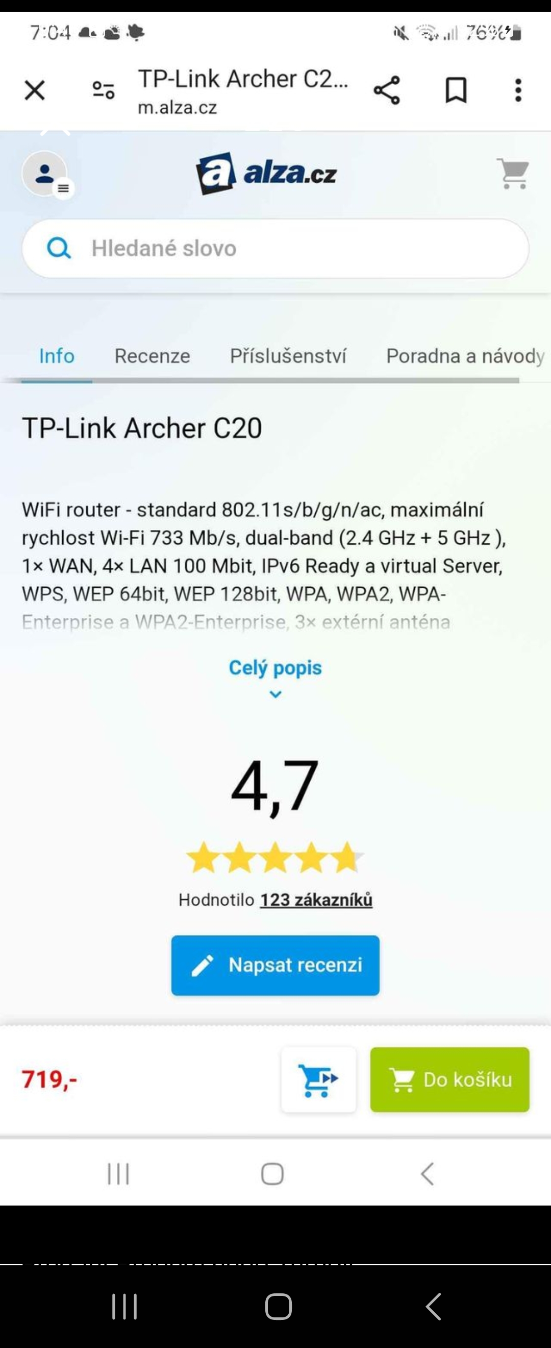 Tak jsem sehnal tp link archer c20 a nemohu se do něho dostat nejde mi přihlásit a v aplikaci tether ho nenajde