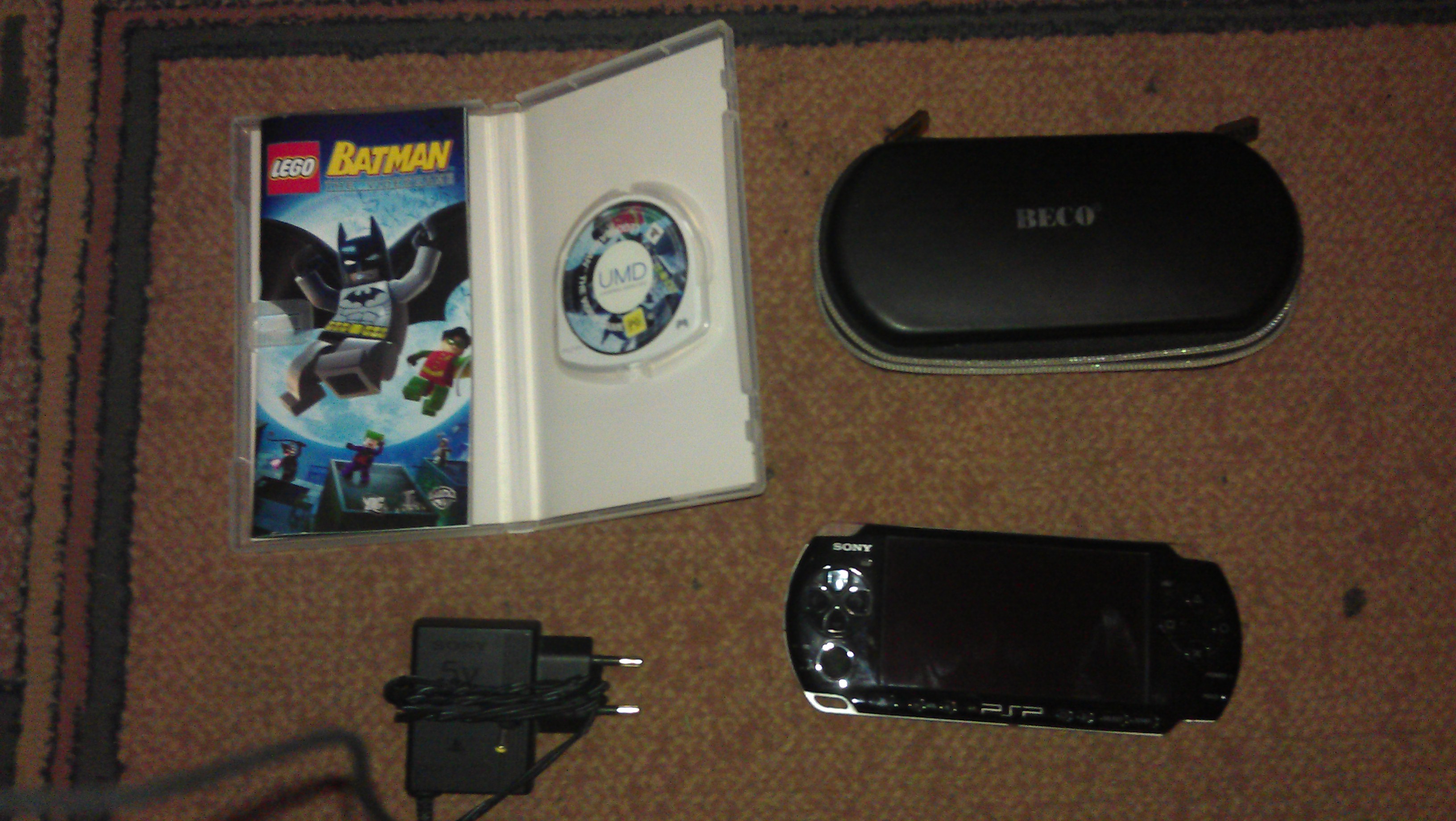 Takže jsou to PSP 3004 barva černá, originální obal, originální nabíječka, 8GB karta + 1 Lego Batman hra v hodnotě 500kč, omlouvám se, ale zapoměl jsem že zbytek her jsem vrátil do JRC, mám pouze tuto jednu...