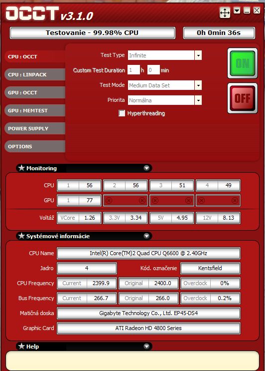 EDIT: Jestli tam máč boxovaný chladič tak se nediv, Q6600 má už v základu TDP 105W tuším... Mám v zásuvce wattmetr a když zapnu na 3,6Ghz orthos/occt tak se mi zvedne spotřeba o 200W.