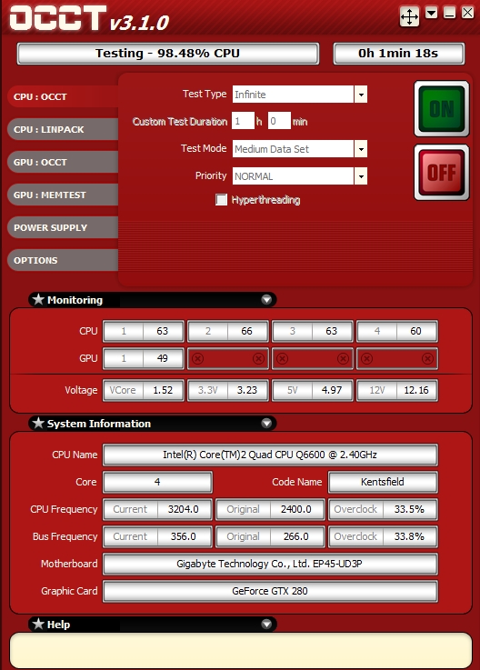 Zkusil jsem v biosu přetaktovat procesor z 2,4 na 2,9 GHz, což šlo bez potíží, následně jsme spustil OCCT, ale hodnoty jsou pořád na 2,4 GHz.