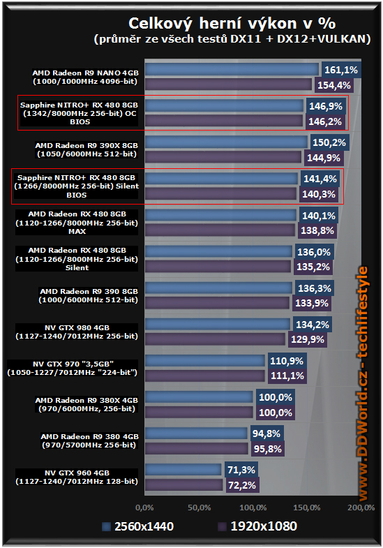 To X: Ony se nemusí ani ty testy upravovat, stačí vybrat tu "správnou skladbu" her a testů a kýžený výsledek je na světě. Je jednoduché vzít Windows 7, jen DX11 hry a jásat, jak je GTX1060 výkoná, ale uplně stejně (jak nám ukázal DD) jde vzít hry které více vyhovují AMD, DX12, Vulkan, a zase jásat, jak je ta RX 480 výkoná a jak zadupe GTX1060 do země. Po dlouhé době tu máme konečně od AMD i od nVidie grafiky, které jsou v průměru stejně výkonné, stojí podobné peníze ale přesto jsou každá jinak profilované (AMD do budoucna, GTX 1060 na současné a starší hry). A pak už je jen na kupujícím, kterou kartu si vybere.