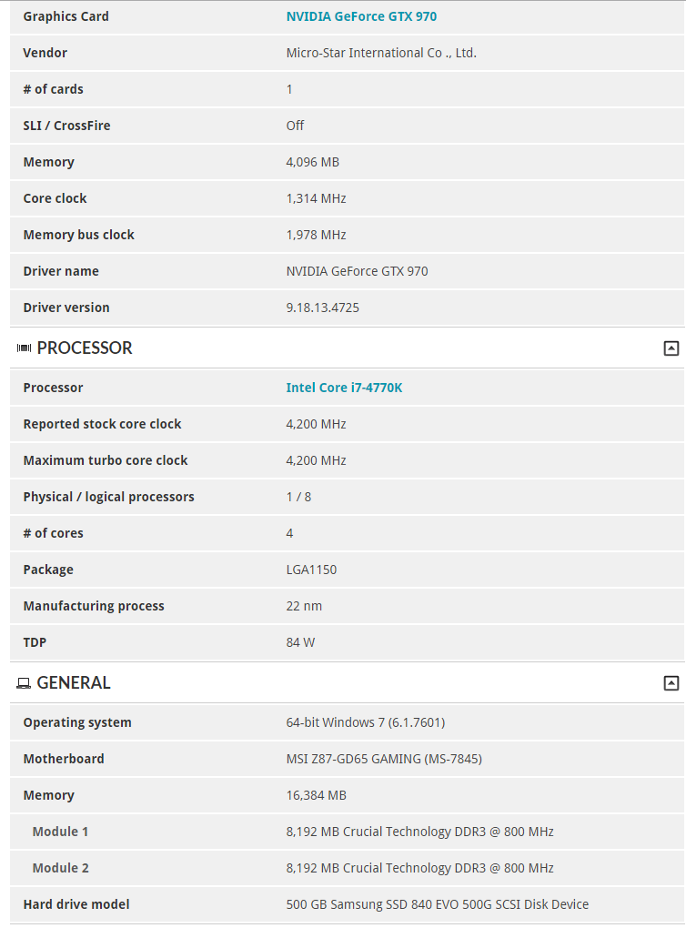 Intel i7 4770K @ 4.2 GHz + MSI GTX 980Ti Gaming 1500MHz/7800MHz
