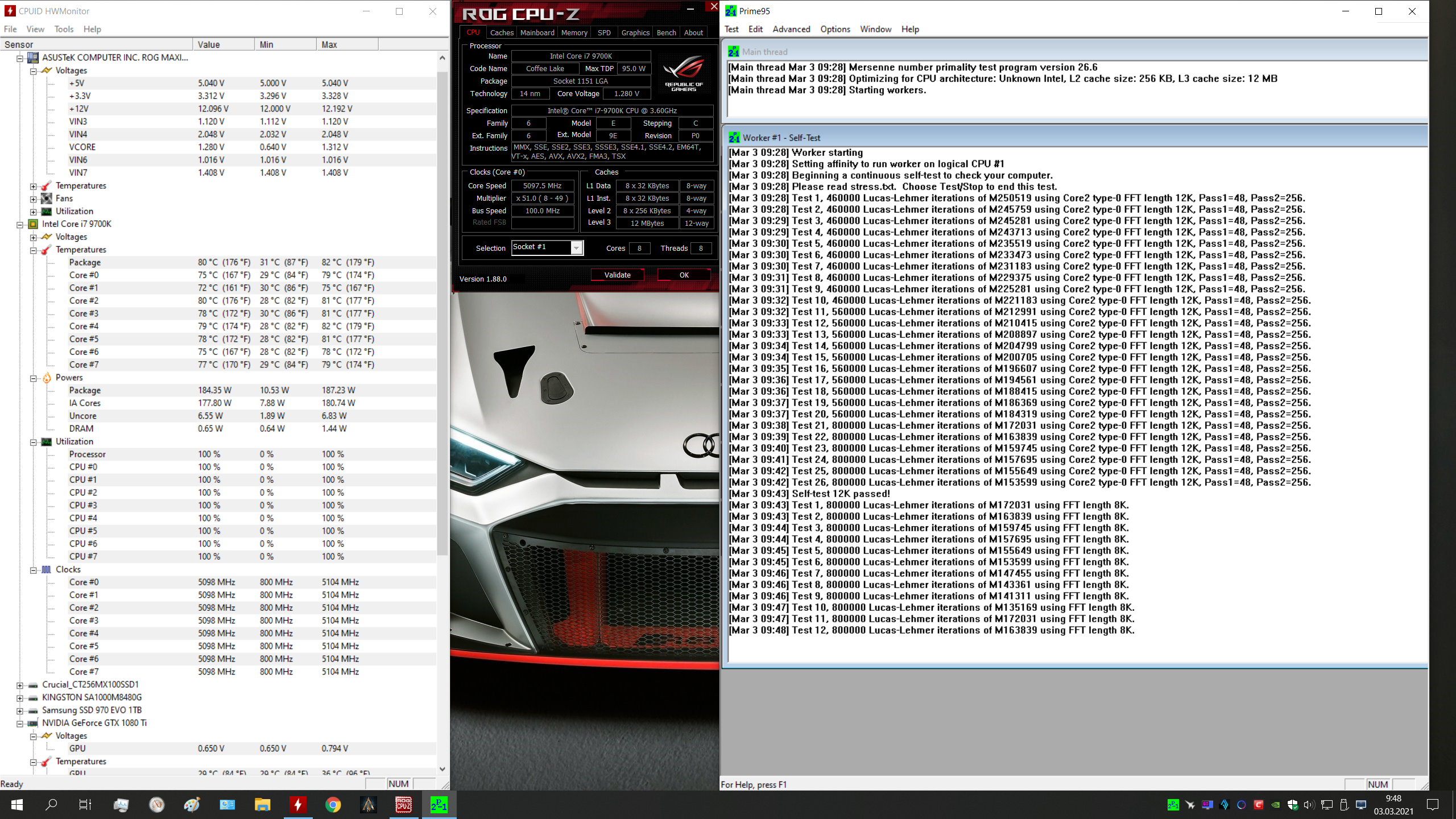 MB: ASUS PRIME Z370-A; CPU: Intel Core i7-8700K + Noctua NH-D15; RAM: Crucial Ballistix 32GB DDR4 3600MHz CL16; VGA: ASUS GeForce RTX 3070 Noctua OC Edition; SSD: Samsung SSD 970 PRO 512GB + Samsung SSD 960 EVO 250GB + Samsung SSD 860 EVO 4TB; PSU: Seasonic FOCUS Plus 750 Platinum; CASE: Fractal Design Define R5; LCD: Dell AW3418DW Alienware; KEYBOARD: Logitech G910; MOUSE: Logitech G502 Hero; HEADPHONES: Logitech G635