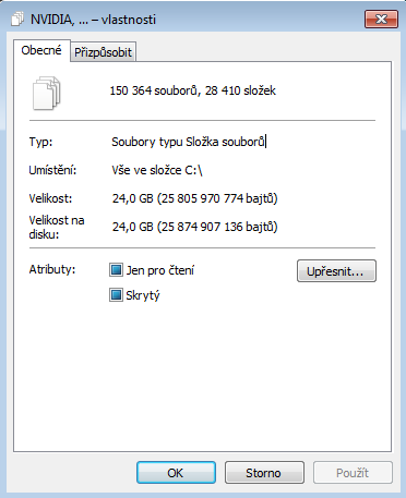 Tak po poslední přeinstalaci vše šlape jak má, po odpojování externích hdd a flashek a následných restartech je vše ok, i "C" má opět správné procento zaplnění, vše odpovídá.