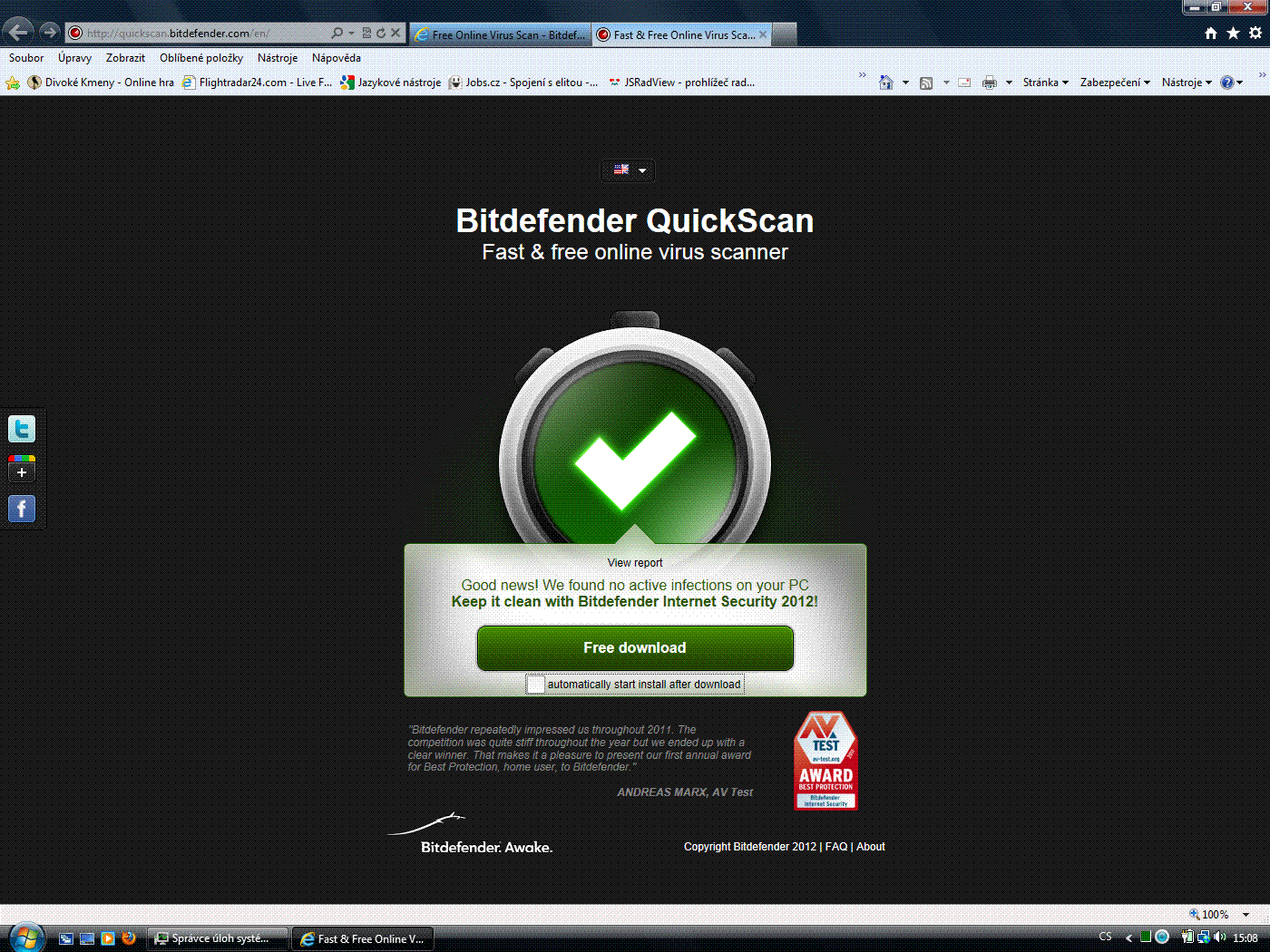 Klikni vpravo od okénka na Vybrat a v Exploreru najdi požadovaný soubor v Tvém PC. Označ ho myší a klikni na Otevřít , poté klikni na Send File. Pokud už byl soubor testován , objeví se okno ve kterém klikni na Reanalyze. Soubor se začne postupně testovat více antivirovými programy. Až skončí test posledního antiviru , objeví se nahoře result a červeně počet nákaz , např. 0/43 , nebo 1/43. Pak zkopíruj myší odkaz na tuto stránku a vlož ji do svého příspěvku.