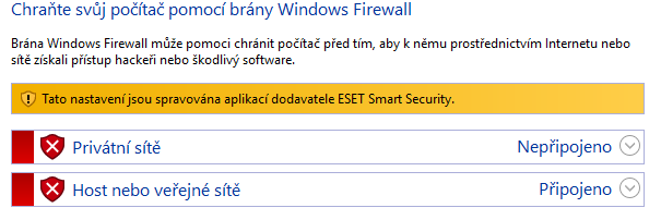 Chci se zeptat FireWall mi spravuje Eset smart security ale když dám Zabezpečení a udržba že to je vyplé mám to nechat být nebo to funguje jak má ? .