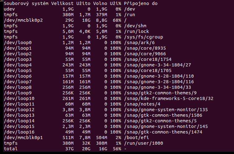 pouzil sem prikaz df -h --total Dekuji moc