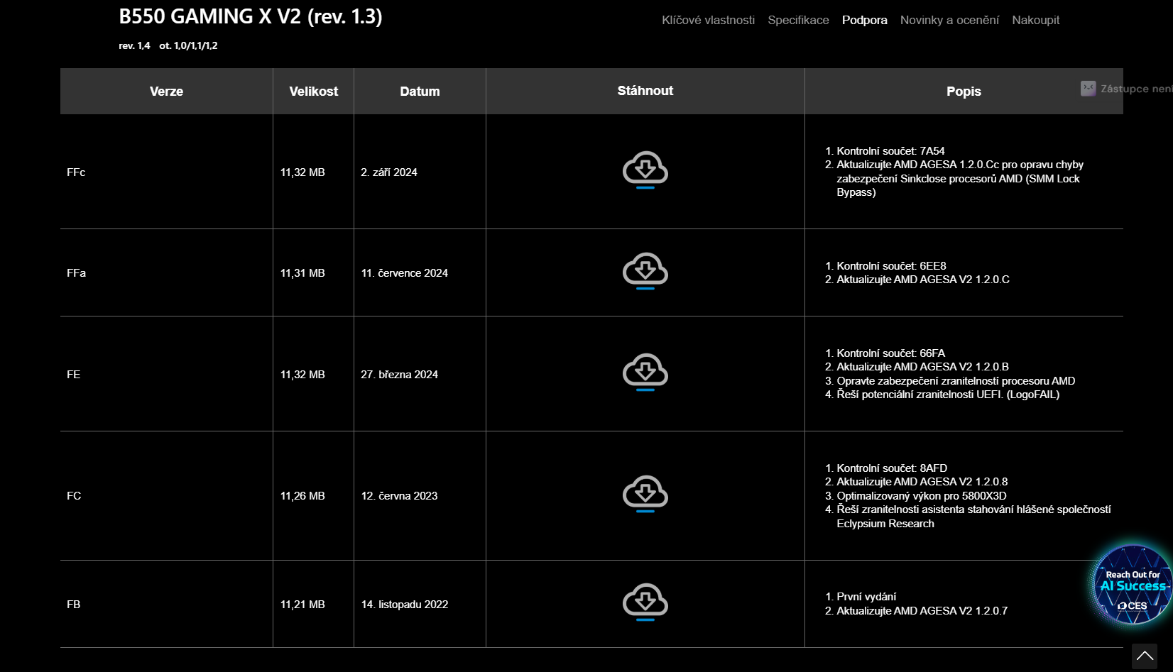 help, aktualizace BIOSu z FC - FE nebo FFc, B550 Gaming X (V2 rev. 1.3)