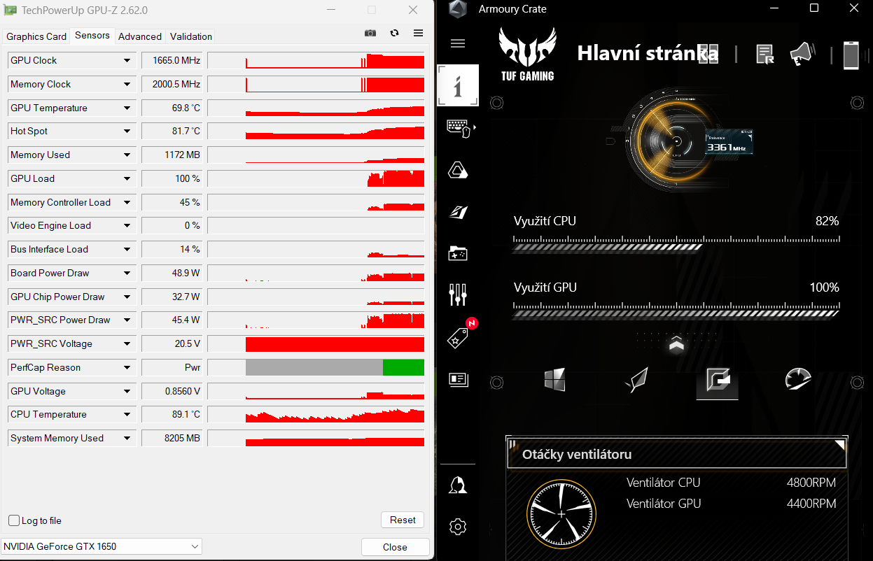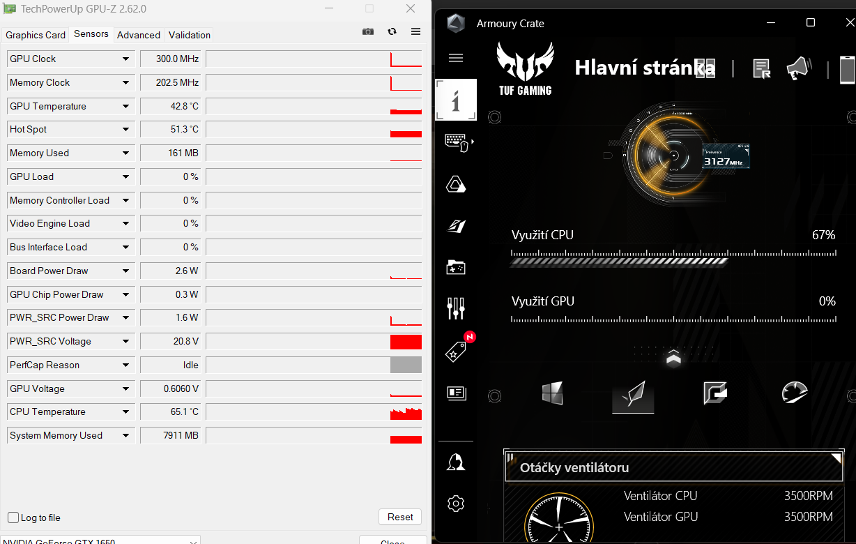 Teplota 65°C odpovídá CPU na 67%, i při CPU 82% odpovídá teplota. Je otázka zda při IDLE jsou otáčky adekvátní, ale teplota 42°C je standardní.