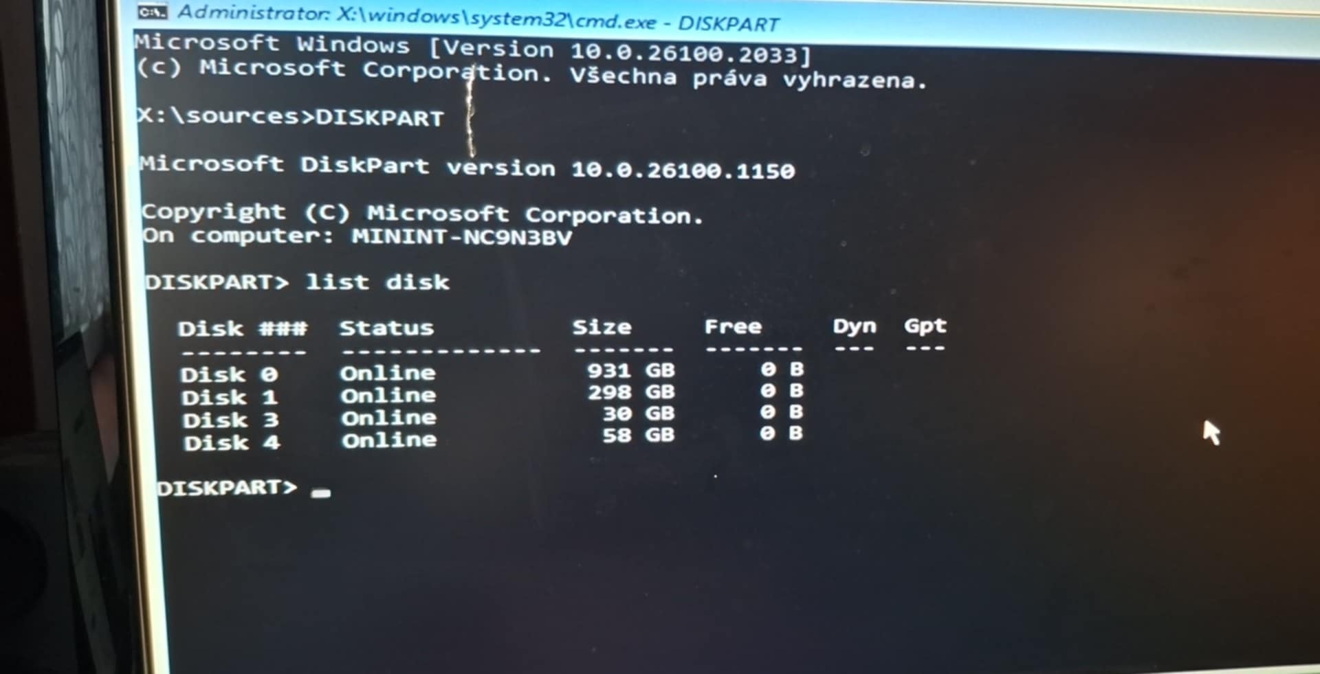 Problém nastane v okamžik, kdy chci udělat čistou instalaci. Instalační USB jsem vytvořil pomocí aplikace "Windows media creation tool" od microsoftu. Pokoždé, když se z tohoto USB pokusím nabootovat, tak jsem hned přivítaný hláškou, že je potřeba nainstalovat ovladač.. V manuálu desky jsem se dočetl, že bych měl zkusit nainstalovat AMD-RAID ovladač (nevím moc proč když RAID nemám ale ok). Stáhnul jsem ze stránek výrobce desky ovladač a nainstaloval jsem AMD-RAID bottom controller (je to jediný ovladač, který Windows považuje za kompatibilní s mojim Hardwarem). Poté mě instalace nechá bez problémů dojít až na výběr disků, kde ale ten nový M.2 disk není viditelný. Zkoušel jsem se dívat i na DISKPART, kde to sice vypadá, že ten systém ví, že tam nějaký další disk ještě je, ale vypsaný tam není (v možnosti list disk je přeskočené číslo Disk 2).