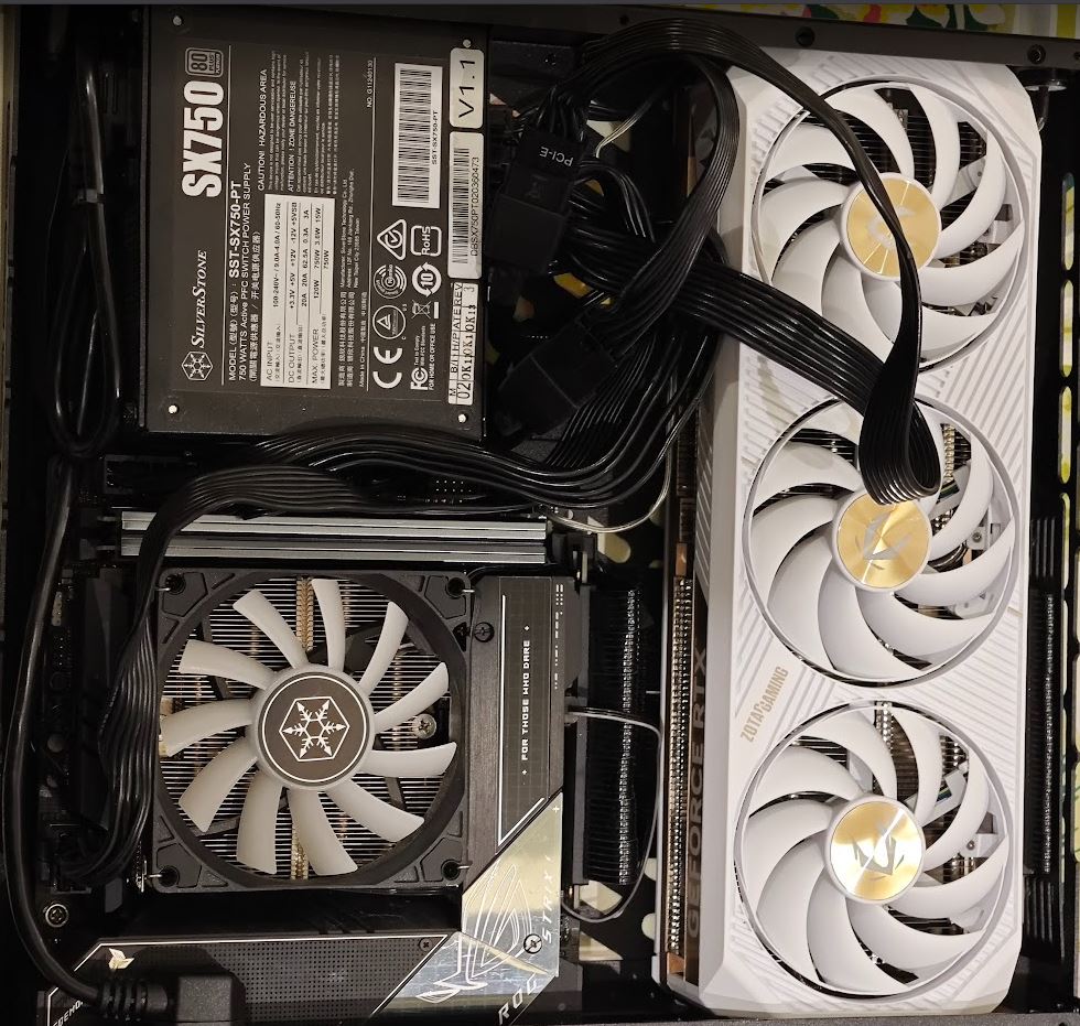 Pro kontext - Micro ITX sestavu jsem koupil v novem stavu z druhe ruky za velmi dobrou cenu od recenzenta skrine Custom_MOD SLM3 za asi 20 tisic: i5 14600kf s RTX 3060Ti, Uz pri koupi jsem planoval upgradovat grafiku a o to vetsi byla moje blbost ze jsem si nepohlidal abych dostal nezapojene kabely od zdroje. Ziju aktualne mimo Cesko a sestava se vejde do prirucniho kufru a byla presne co jsem chtel. Pocitac jsem si v minulosti postavil i nekolikrat upgradoval, ale ITX je pro me neco noveho, ale nemyslim si ze bych neco znicil.