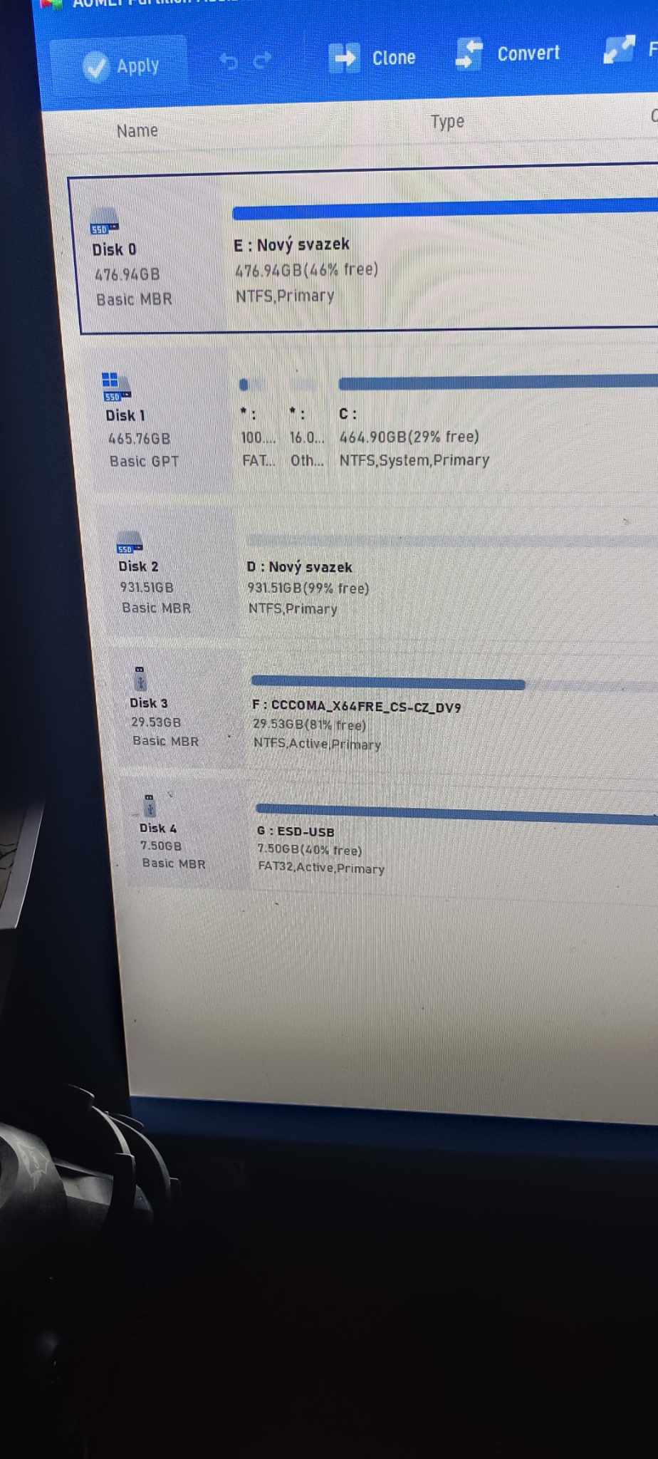 Klik PTM na označenie Disk 4 a vyber si Delete All Partitions a potom hore vľavo na Apply,či to prebehne.