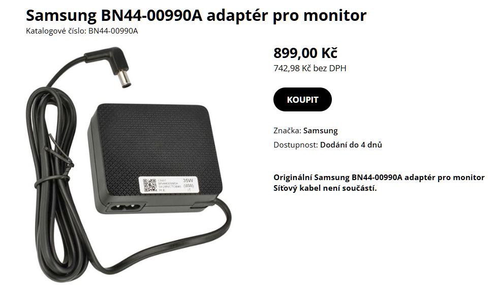 Monitor má napájecí kabel BN44 00990A ale výstupní konektor je 6,5mm x 4,4mm se středovým kolíkem takže nemůžu zkusit
